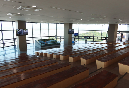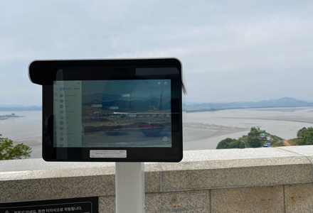 강 건너로 바라보이는 북한지역의 지형, 주요시설, 주민생활등에 대한 설명영상을 4개국어(한국어, 영어, 일본어, 중국어)로 시청할 수 있습니다. (약 300석 규모)XR망원경
