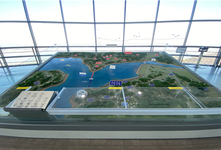 강 건너로 바라보이는 북한지역의 지형, 주요시설, 주민생활등에 대한 설명영상을 4개국어(한국어, 영어, 일본어, 중국어)로 시청할 수 있습니다. (약 300석 규모)